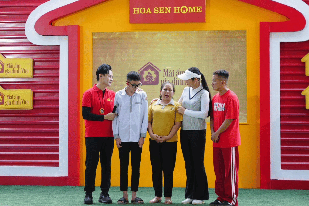 Khoảnh khắc vỡ òa cảm xúc khi gia đình em Nguyễn Quang Minh rút được bảng tiền thưởng từ Hoa Sen Home tại Mái ấm gia đình Việt.